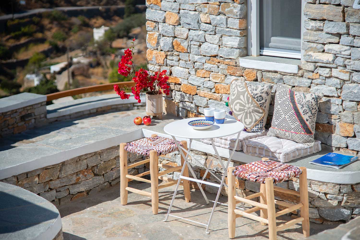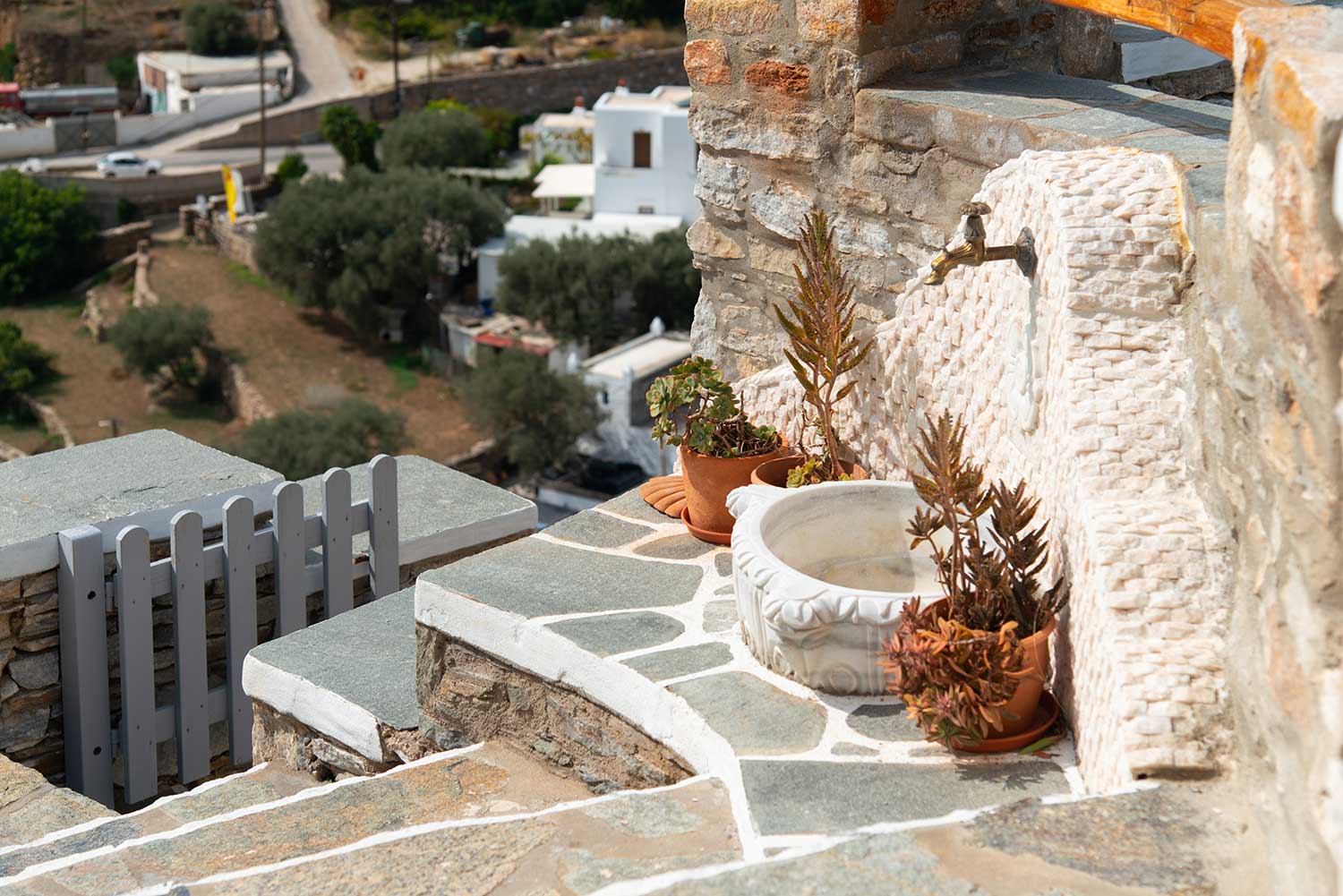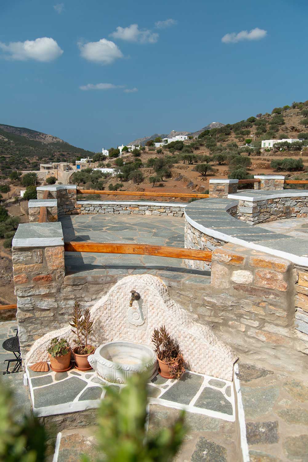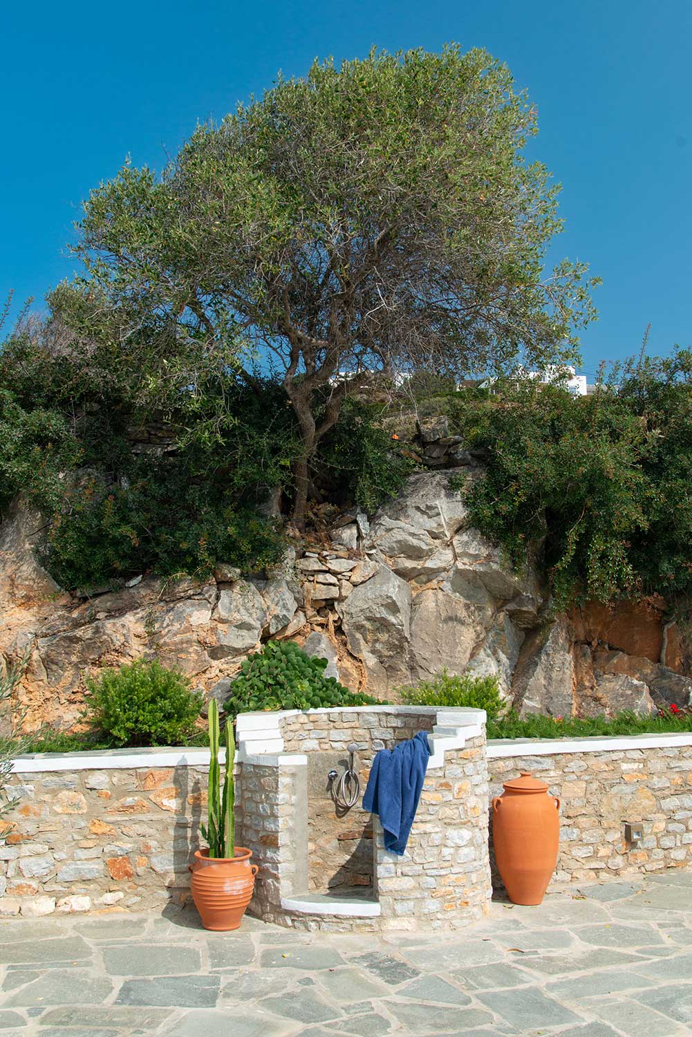 Πέτρινες λεπτομέρειες στους εξωτερικούς χώρους του Art Houses Sifnos