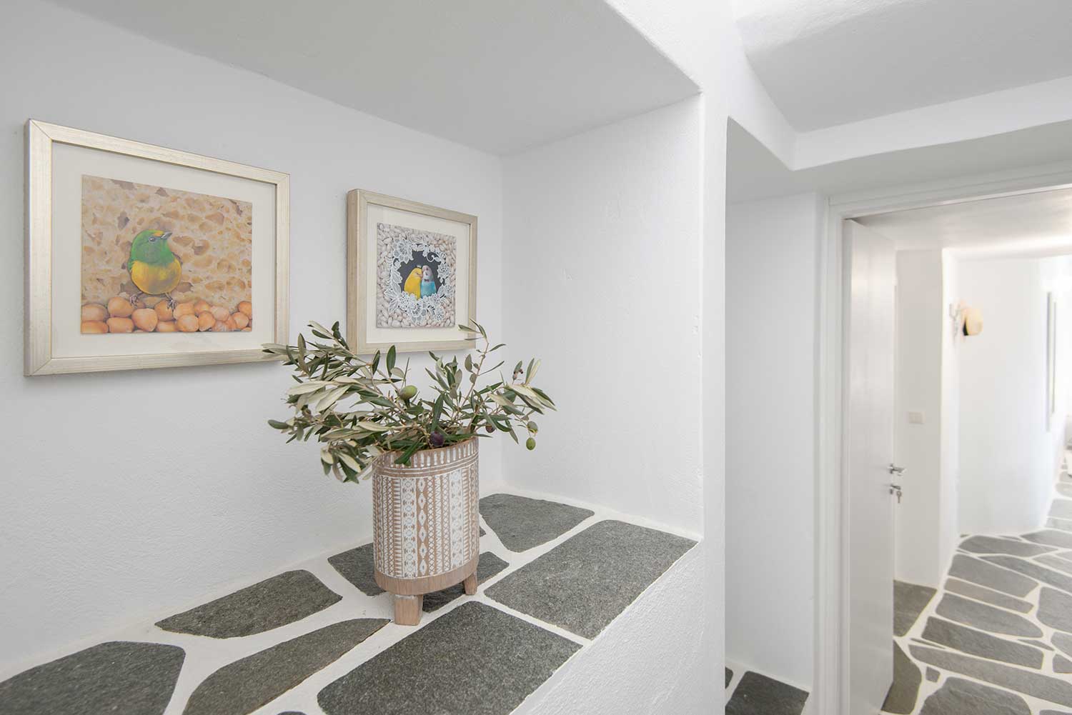 Από τον ιδιωτικό χώρο στάθμευσης του Sifnos Art Houses ξεκινούν τα παραδοσιακά σκαλιά που οδηγούν στις κατοικίες. Αυτές, καθώς είναι χτισμένες αμφιθεατρικά, οι εξωτερικοί τους χώροι και οι αυλές, συνδέονται μεταξύ τους με σκαλιά.