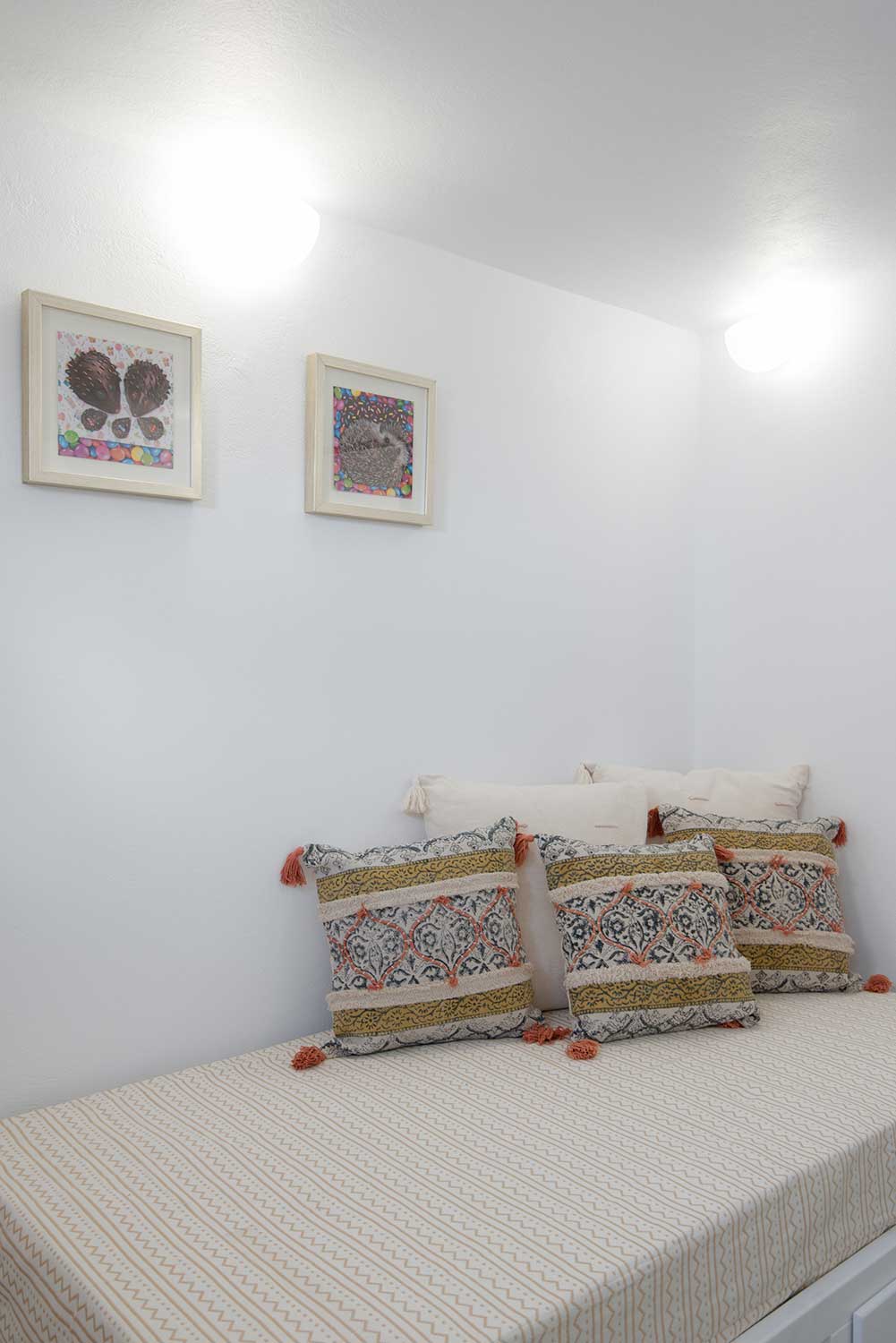 Στον χώρο των 40τμ. του άλλου επιπέδου περιλαμβάνονται ένα υπνοδωμάτιο με διπλό κρεβάτι, μπάνιο, εξοπλισμένη κουζίνα, όπου βρίσκεται και ένας καναπές κρεβάτι.